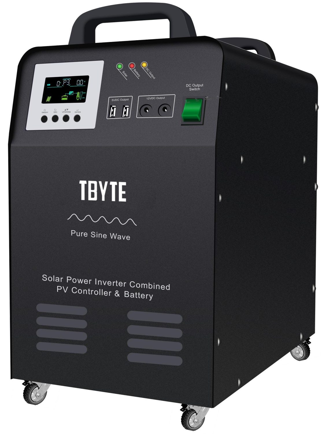 TBYTE 500W TROLLEY INVERTER WITH 12V 65AH BAT – SP500WBattery Type: Lead Acid Battery Integrated Photovoltaic Power Point Energy Storage SystemIntelligent Charge and Discharge Management System Function, effectively protect the Battery Charge and DischargeColorful and bright Display, visually Display the working status of the machineOutput Overload, Overvoltage, Overtemperature, short circuit intelligent protectionOutput pure sine wave, strong Load CapacityBuilt-In Solar Charge Controller, High Charging efficiencyAdjustable Switching Mode, DC, AC, Solar priority ModeSolar Power Inverter Combined PV Controller & BatteryModel: SP0512-55P Battery Voltage: 12V 24VIn-Built Battery Specification: 65AHRated Power: 500WOutput Voltage: 110VAC/220VACOutput Frequency: 50/60HzOutput Waveform: Pure Sine WaveCharge By A Mians SupplyRated Voltage 110VAC/220VAC (* means an optional function)Charge Current: 8ASolar InputMaximum Photovoltaic Voltage (VDC) =25VCharge Voltage (VDC): 13.7VRated Charge Current (A): (PWM)5-10AMaximum Power(Wp): 360WpVoltage Of Overcharge Protection(VDC):14.2VVoltage Of Overcharge Recovery(VDC): 14.0VVoltage Of Floating Charge(VDC): 13.7VDC OutputVoltage Of High-Voltage Protection(VDC): 16VVoltage Of High-Voltage Recovery(VDC): 15.2VVoltage Of Low-Voltage Recovery(VDC):13VVoltage Of Low-Voltage Protection(VDC): 11V5VDC USB Output Port 5VDC USB: 2units/MAX 2A12VDC Output Port 12VDC: 2 DC Ports (MAX 2A)Starting Temperature Of The Exhaust Fan: >45Ambient Temperature For Operation: 0-40Ambient Temperature For Storage: -25-55Operation/Storage Conditions/ : 0-90%(No Condensation)External Dimensions: D x W x H(mm) 423 x 260 x 453Packing Dimensions: D x W x H(mm) 520 x 370 x 520POWERCORD To Be Purchased Separately6 Months Warranty